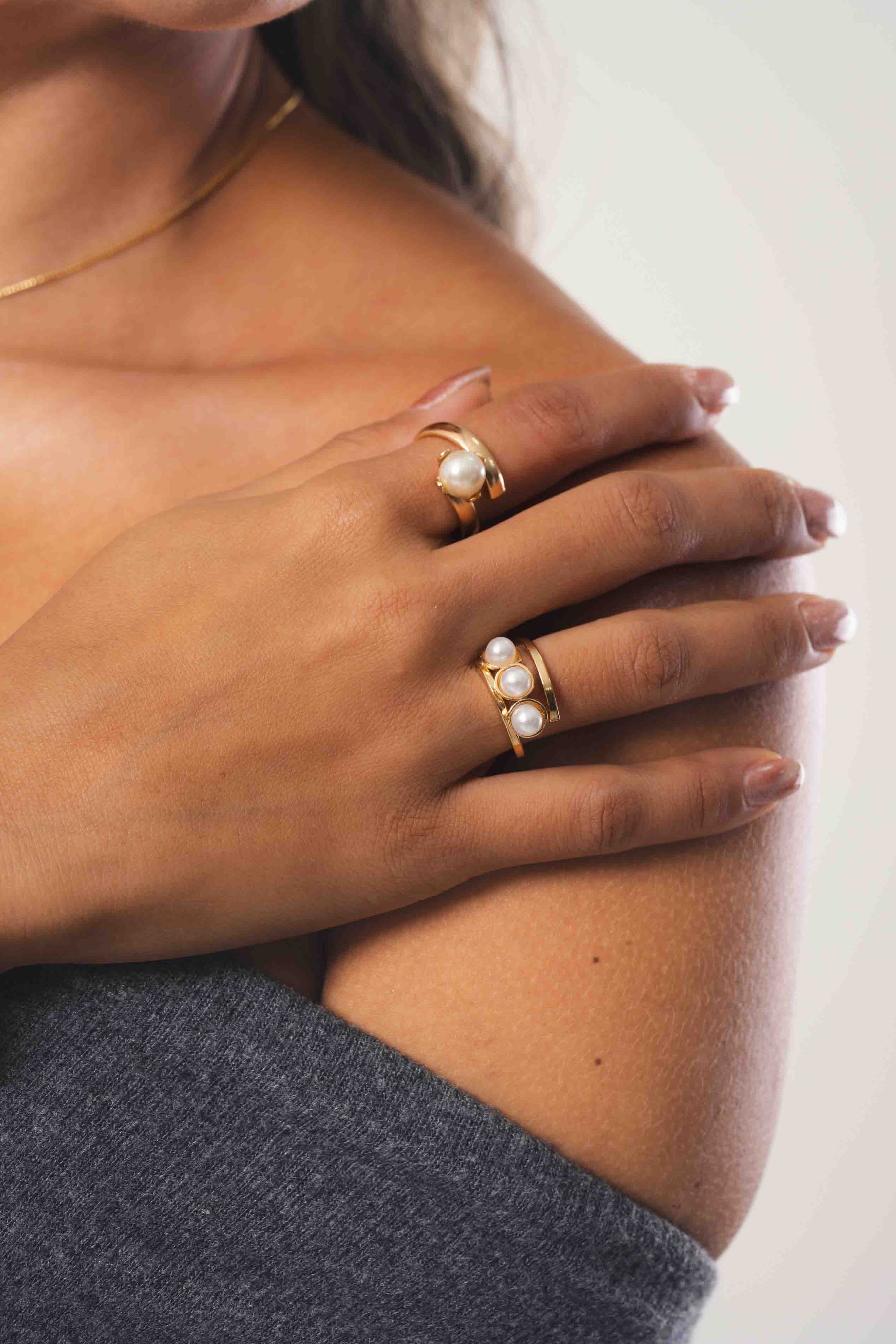 Una curva dorada que se detiene en una perla, como un pensamiento que encuentra descanso. Punto de Calma abraza el gesto de pausar, de volver al centro, de escuchar lo que no necesita ruido. Es una joya que acompaña momentos de claridad silenciosa, donde la elegancia nace de la sencillez y la intención.