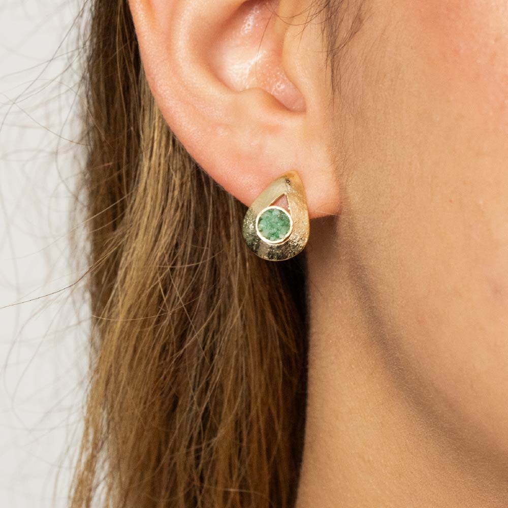 El Dúo Simetría Intuitiva une dos piezas que se leen como una sola idea. Los aretes y el collar comparten una forma orgánica en metal dorado que envuelve la piedra en bruto con intención, creando un diálogo visual sereno y preciso. La textura natural del centro aporta profundidad, mientras la repetición de la silueta genera equilibrio y coherencia. Al llevarlo, se siente alineación, calma y una elegancia silenciosa que acompaña sin imponerse.