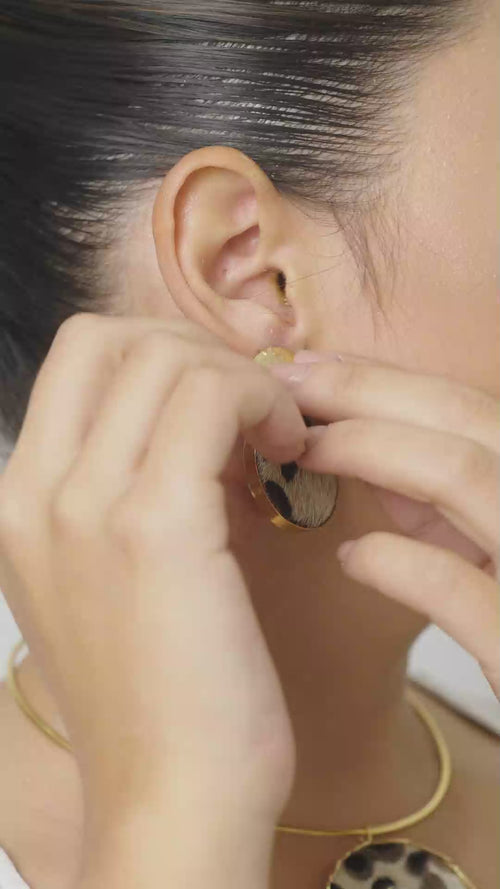 Los Aretes Cielo de Estepa celebran la dualidad entre la fuerza y la calma. Su diseño combina un disco superior dorado, texturizado como el brillo del sol en el metal, con una base moteada que evoca los paisajes áridos donde el viento talla su propio camino. Cada detalle rinde homenaje al espíritu libre de las mujeres que avanzan sin mirar atrás, guiadas por su intuición y su instinto.
