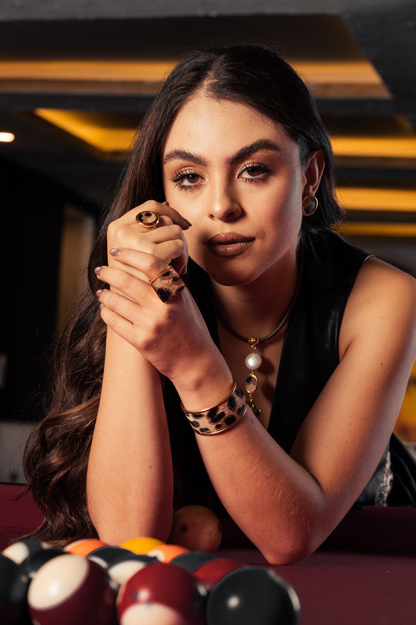 La Pulsera Fiera Dorada irradia la esencia indomable de una mujer que camina con paso firme entre el ruido, las luces y la música. Su textura animal, sobre una base de metal dorado, refleja el equilibrio perfecto entre instinto y elegancia.